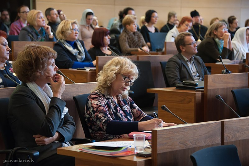 29. oktobrī, 2015, Rīgas Domē notika ikgadējā LPB konference “Baznīca, skola, ģimene”, to atklāja LPB metropolīts Aleksandrs un Rīgas Domes priekšsēdētājs Nils Ušakovs. Konferences tēma šogad – tikumiskā izglītība. Apsveikuma vārdus teica VE Romas Katoļu Baznīcas arhibīskaps Zbigņevs Stankēvičs, LELB bīskaps Einārs Alpe, Igaunijas un Lietuvas PB pārstāvji. Plenārsēdē referēja LKrA rektore prof. Skaidrīte Gūtmane, ref. “Viduvējība un tukšums tikumiskās audzināšanas kontekstā”. Plenārsēdē uzstājās Saeimas deputāte J.Stepaņenko, Daugavpils Universitātes doc. T.Uzole. Īpašs prieks par referātu, kuru nolasīja LKrA absolvente, tag. profesionālās apvienības “Terēze” vadītāja Ārija Mortukāne, (“Bāreņu audzināšana ģimenē”), kā arī Teoloģijas programmas students, LPB priesteris V.Teplovs. Ļoti vērtīgi bija visiem, kas uzstājās! Piedāvājam nelielu ieskatu konferencē, D.Sedova foto.