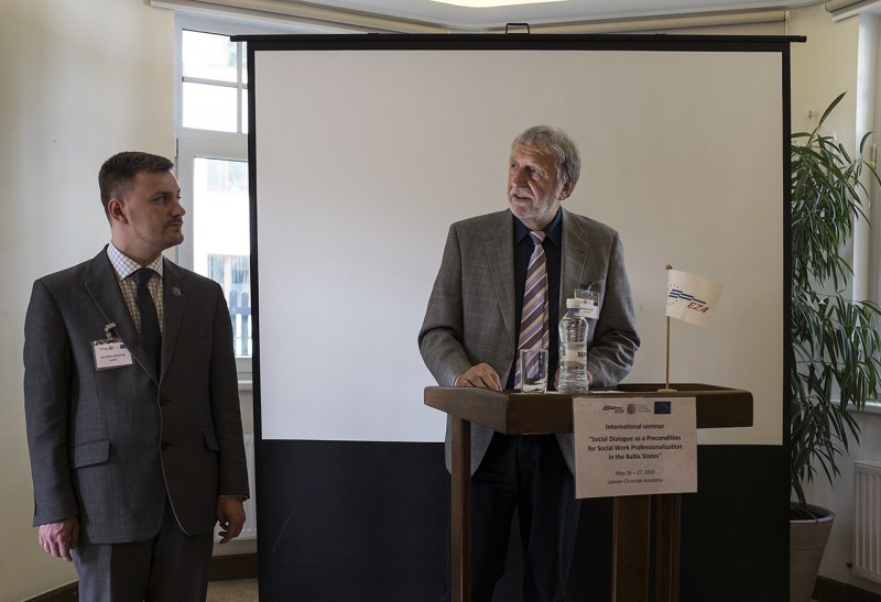 26.-27. maijā, 2016, Latvijas Kristīgajā akadēmijā notika ikgadējais, nu jau tradicionālais starptautiskais EK atbalstītais EZA (Eiropas Centra strādājošo jautājumos, Vācija) seminārs, šoreiz ar tēmu “Sociālais dialogs kā sociālā darba profesionalizācijas instruments Baltijas valstīs”. Semināra mērķis – laikā, kad mainās sociālā darba paradigma, precizēt sociālā darba robežas un inovatīvā veidā sociālā darba uzdevumus saslēgt ar stratēģijas “Eiropa-2020” pamatnostādnēm, kā arī ar nodarbinātības jautājumiem. Seminārā piedalījās EZA viceprezidents H. Mecgers, EZA eksperti J.Herudeks un B.Mahils, kā arī EZA bij. ģenerālsekretāre un LKrA Dr.HC R. Gotbehuta, EZA bij. ģenerālsekretārs L.Pauels, prof. E.Aciene (Klaipēdas Universitāte, Lietuva), E.Kulboka-Latika (Tartu Universitāte, Igaunija), kā arī Latvijas speciālisti – LR Saeimas Sociālo un darba lietu komisijas pr., LKrA Dr.HC A.Barča, LBAS prezidents, LKrA Dr.HC P.Krīgers, Latvijas eksperts EK, Dr.demogr. I.Indāns, Rīgas pils.Sociālās pārvaldes pr., departamenta direktora vietn. M. Moors, Labklājības ministrijas Sociālās iekļaušanas un sociālā darba politikas departamenta dir. vietniece I.Skrodele-Dubrovska, akadēmiķe, LKrA Dr.HC Rivža. Semināra noslēgumā tā dalībnieki apmeklēja biedrību “Rūpju bērns” Rīgā.